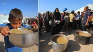 İsrail’in Gazze Şeridi’ne yönelik ablukası ve devam eden saldırıları nedeniyle gıdaya erişimde zorluk yaşayan Gazze’nin orta kesimindeki Filistinlilere, bir hayır kurumu tarafından sıcak yemek dağıtımı yapıldı.