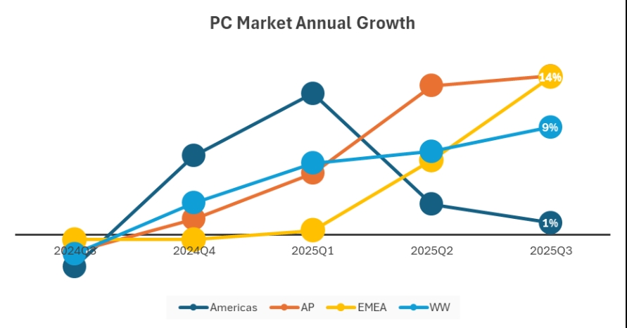 IDC, Windows 11’e geçiş süreci ve eski donanımların yenilenme ihtiyacı sayesinde bilgisayar pazarının güçlü bir yıl geçirdiğini belirtiyor.